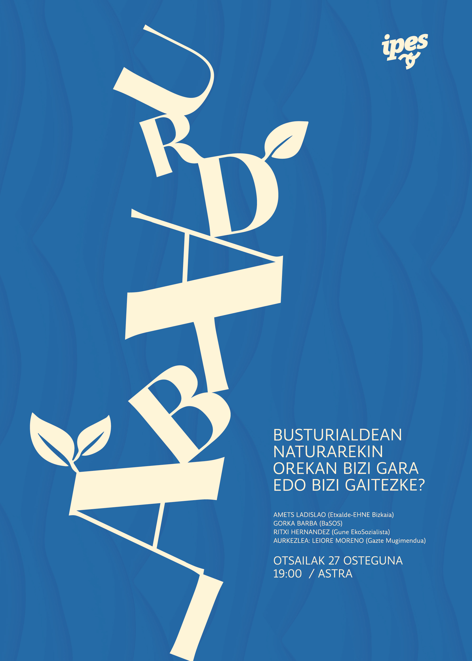 Busturialdeko eskualde eztabaidaren testuinguruan, mahai-inguru bat egin nahiko genuke: “Busturialdean naturarekin orekan bizi gara/bizi gaitezke?” izenburupean. Horretarako, jada dauden eremu, egitasmo, ekinbide ezberdinak prestigiatu, erdiguneratu, eta haietatik sortzen den eredu alternatiboari azpimarra eman nahiko genioke.
