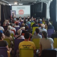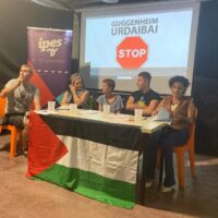 Dena den, eta testuinguruak hala markaturik, bi elementuri ere arreta jarri genien: batetik, eta Busturialdean bolo-bolo dagoen Guggenheim Urdaibai proiektuaren aurrean, STOP plataformak deituriko urriaren 28ko mobilizazioa presente egon da, plataformako partaideei ahotsa emanez; eta, bestetik, Palestinari elkartasuna adierazi eta sionismoa, okupazioa eta apartheidaren aurrean gaudela aldarrikatzeko espazioa bihurtu dugu. Gora Palestinako herri askea!